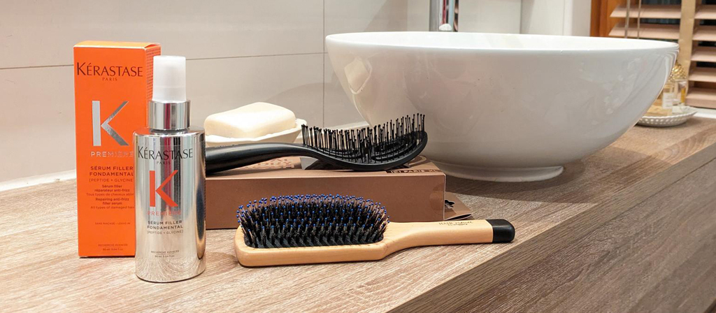 Het is haar-was-dag! Dit is altijd een behoorlijke routine, maar het is toch een heerlijk selfcare momentje en mijn haar is mij altijd dankbaar. Zeker omdat ik regelmatig bij de kapper te vinden ben en mijn haren al jaren highlight, is extra verzorging geen overbodige luxe. Op haar-was-dag borstel ik mijn haar voor ik ga douchen goed door met de Hair Rituel borstel van Sisley. Dit omdat ik met zo min mogelijk knopen in mijn haar wil gaan wassen. Door de everzwijnharen in deze borstel, ontwar ik mijn haar op een zachte manier en voorkom ik het afbreken van haren. Eerst heb ik mijn haar twee keer gewassen (één keer om te reinigen en één keer om te verzorgen) en een conditioner gebruikt. Nadat ik mijn haar een tijdje aan de lucht heb laten drogen, borstel ik nogmaals alle knopen uit mijn haar.