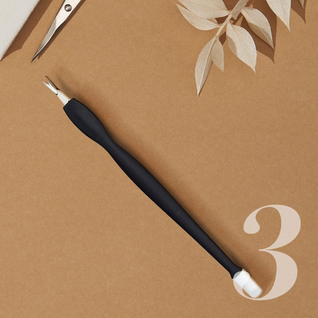 Shoptip: de 2-in-1 nagelriemverwijderaar heeft zowel een bokkenpootje als een nagelriemverwijderaar waarmee je velletjes kunt weghalen.