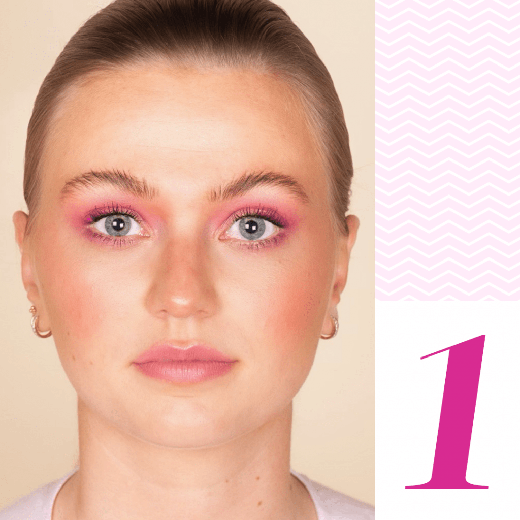 STAP 1 Breng roze oogschaduw aan op je ooglid.