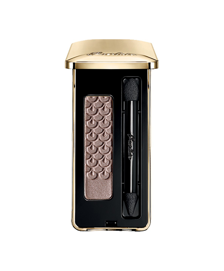 Een statementoutfit in leder vraagt om krachtige kleuren op je gezicht. Zet je ogen dus stevig aan met donkerbruine oogschaduw zoals deze van Guerlain die niet in de huidplooitjes bij je ogen kruipt. Werk af met eyeliner en mascara.