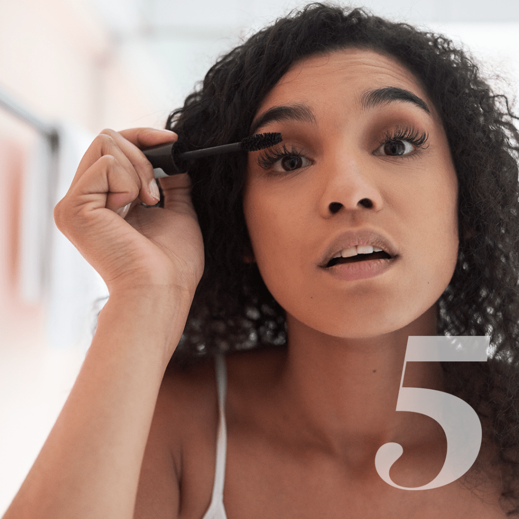 Zwarte mascara op je wimpers opent je blik en zorgt ervoor dat je fris uit je ogen kijkt. Heb je van jezelf kleine ogen of ben je nog erg moe? Sla dan de onderste wimpers over.