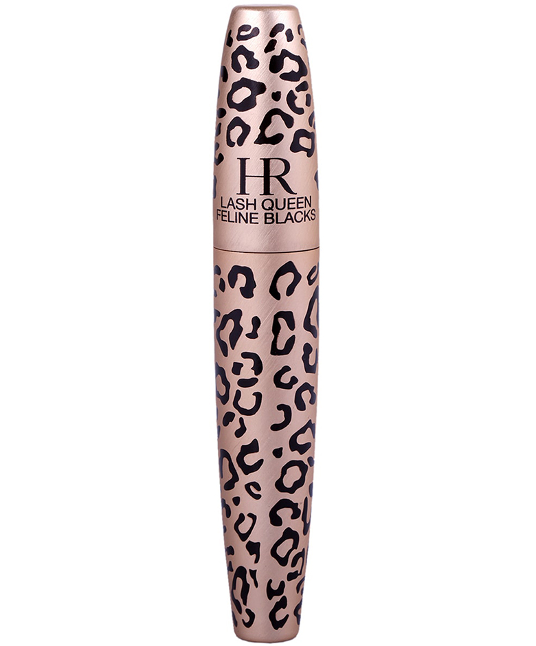 Breng veel zwart kohlpotlood aan onder je onderste wimperrand en trek dit door naar de wing. Werk je look af met enkele laagjes Lash Queen Feline Blacks mascara van Helena Rubinstein.