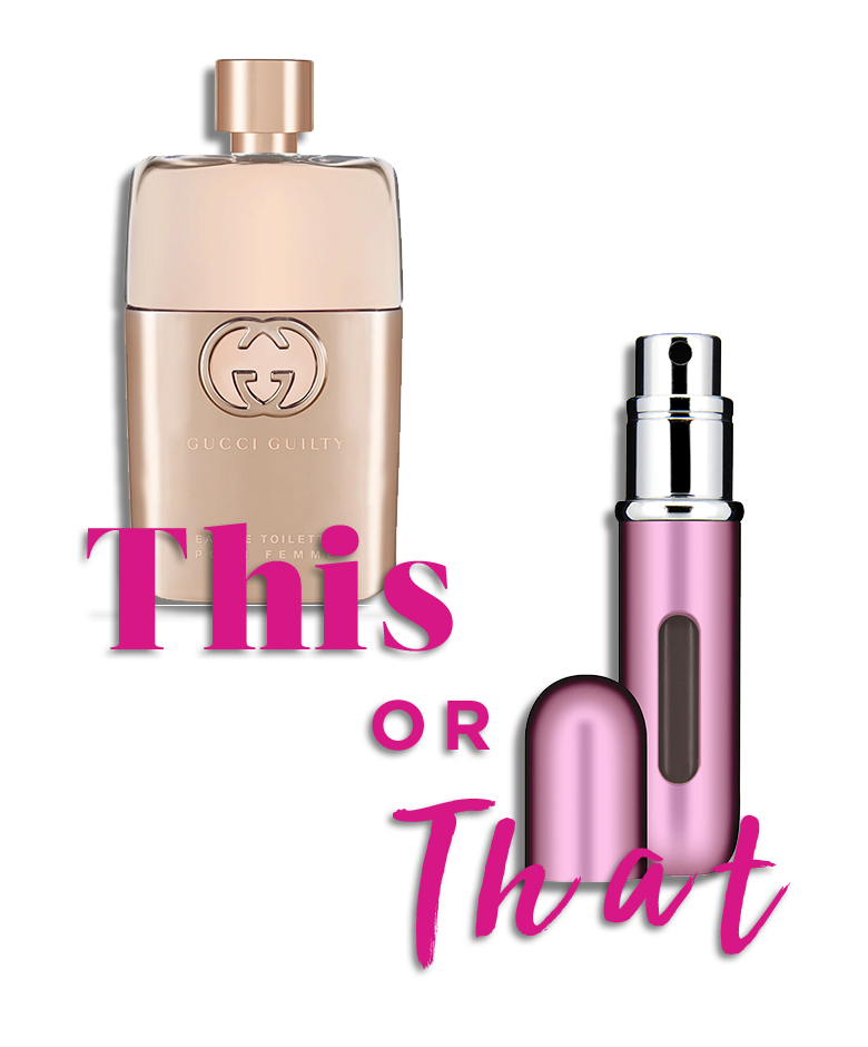 TIP: Eau de toilette vervaagt iets sneller. Daarom is het handig om een parfumverstuiver zoals Classic HD Spray Pink van Travalo in je tas te stoppen die je vult met je favoriete geur voor snelle touch-ups.