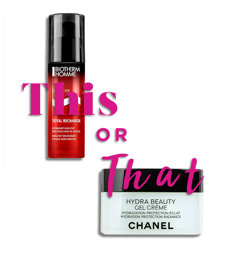 De ultrahydraterende Hydra Beauty Crème van Chanel geeft de vrouwenhuid een mooie glow. De mannenhuid is meer gebaat bij Total Recharge Hydraterende Dagcrème van Biotherm Homme die zichtbare tekenen van vermoeidheid bestrijdt.
