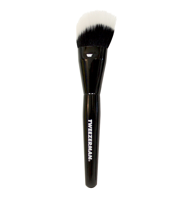 Voor het contouren van het gezicht met poeder, waarbij je optisch schaduwpartijen maakt, gebruik je een stevige schuin afgesneden kwast. De haartjes brengen het poeder precies aan waar jij dat wilt. Deze borstel van Tweezerman heeft een platte vorm en dicht opeengepakte haartjes die zorgen voor een uiterst precieze applicatie.