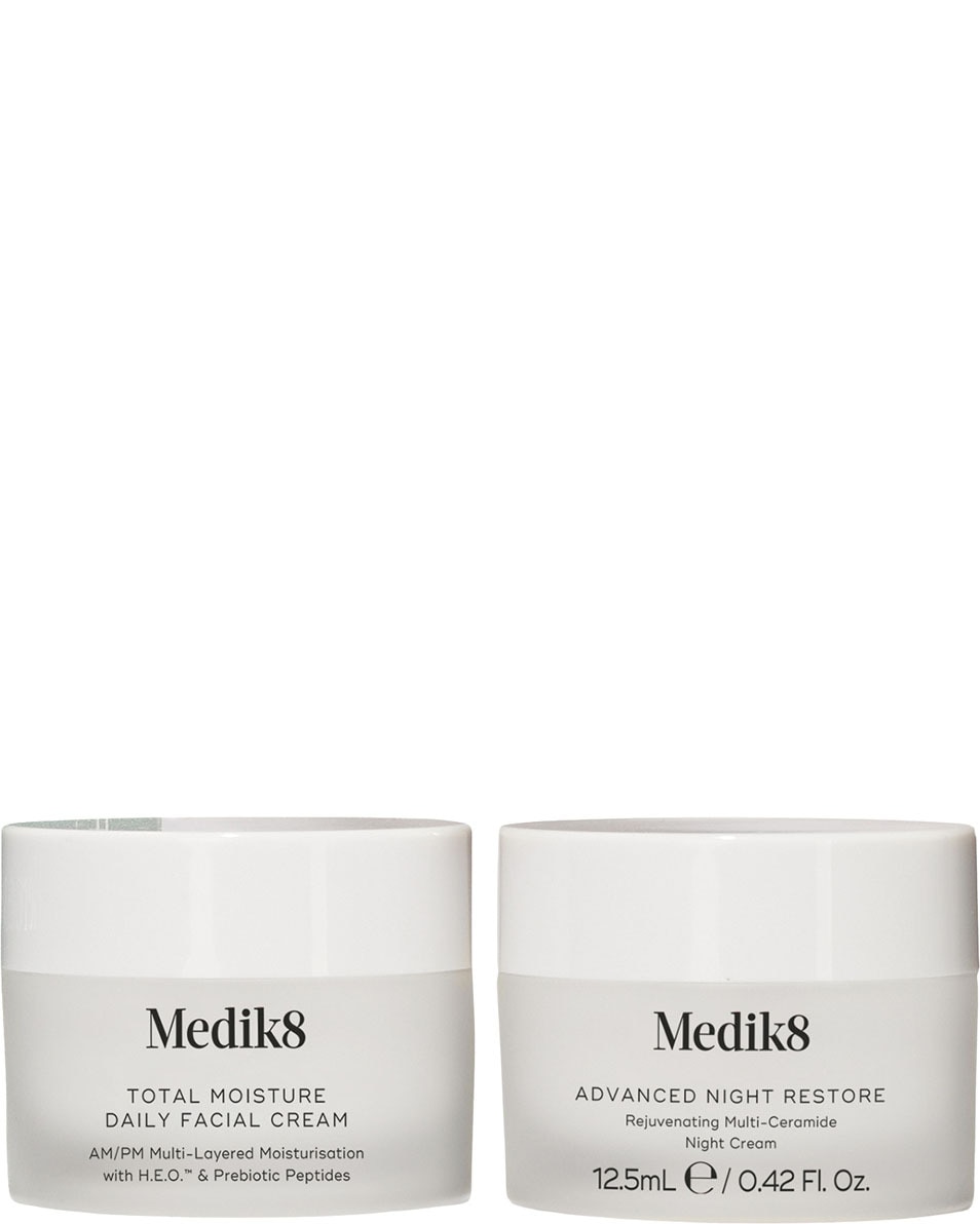 Geef je huid een intensieve hydratatieboost met dit verzorgende duo. Begin je ochtend met Total Moisture Daily Facial Cream, wetenschappelijk bewezen om de huidconditie al binnen één uur te verbeteren. Je huid voelt merkbaar zachter, gladder en beter beschermd tegen dagelijkse invloeden van buitenaf. ’s Avonds zorgt Advanced Night Restore voor intens herstel door de huid diep te voeden, zodat je ontwaakt met een frisse, soepele en zichtbaar uitgeruste huid.
