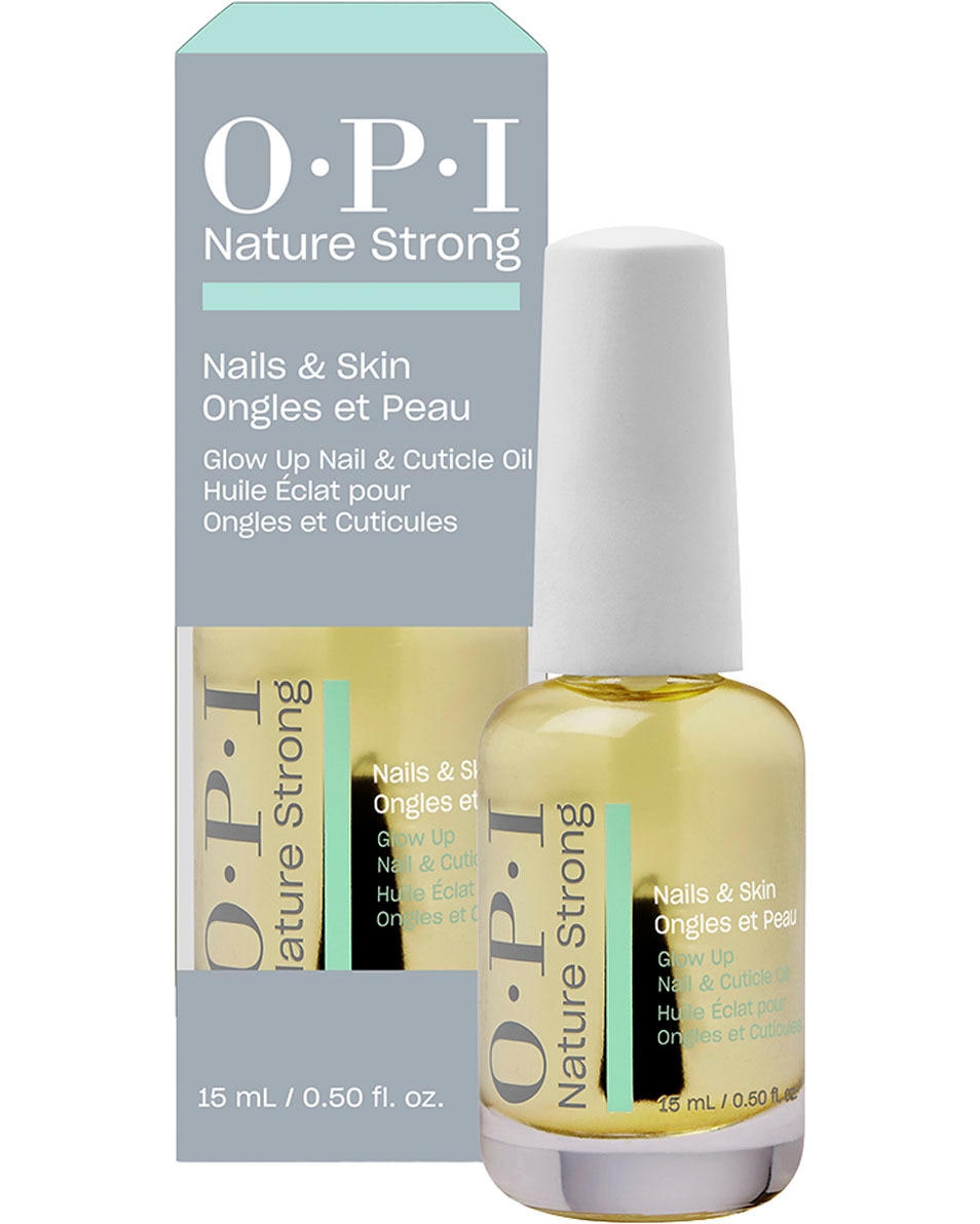 De OPI Nature Strong Nails & Skin Glow Up Nail & Cuticle Oil heeft een formule die voor 94% van natuurlijke oorsprong is. De olie is verrijkt met macadamia-olie, druivenpitolie en vitamine E, en heeft een lichte textuur die de nagelriemen hydrateert. Het helpt nagels en nagelriemen te herstellen, te hydrateren en te beschermen tegen uitdroging. Geschikt voor zowel handen als voeten.